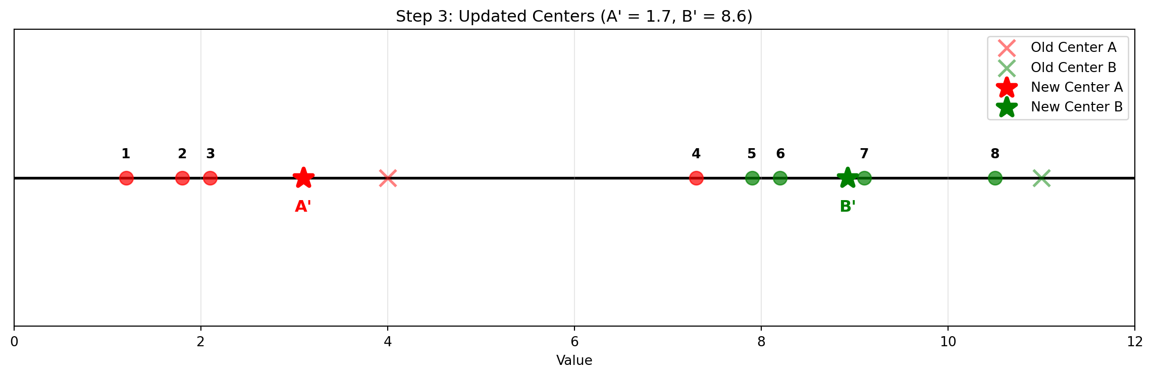 Time: 10 minutes Materials: Pencil and paper Objective: Understand the k-means algorithm through 1D visualization
