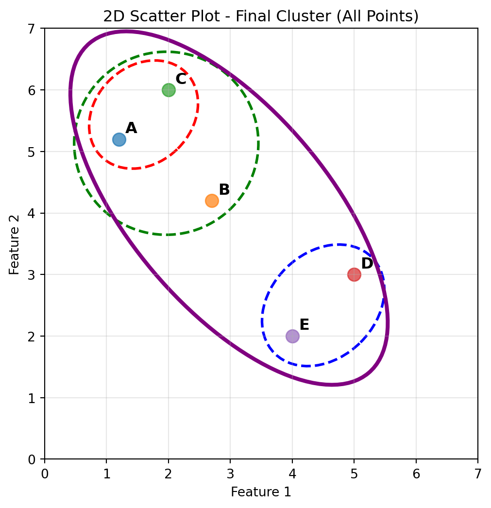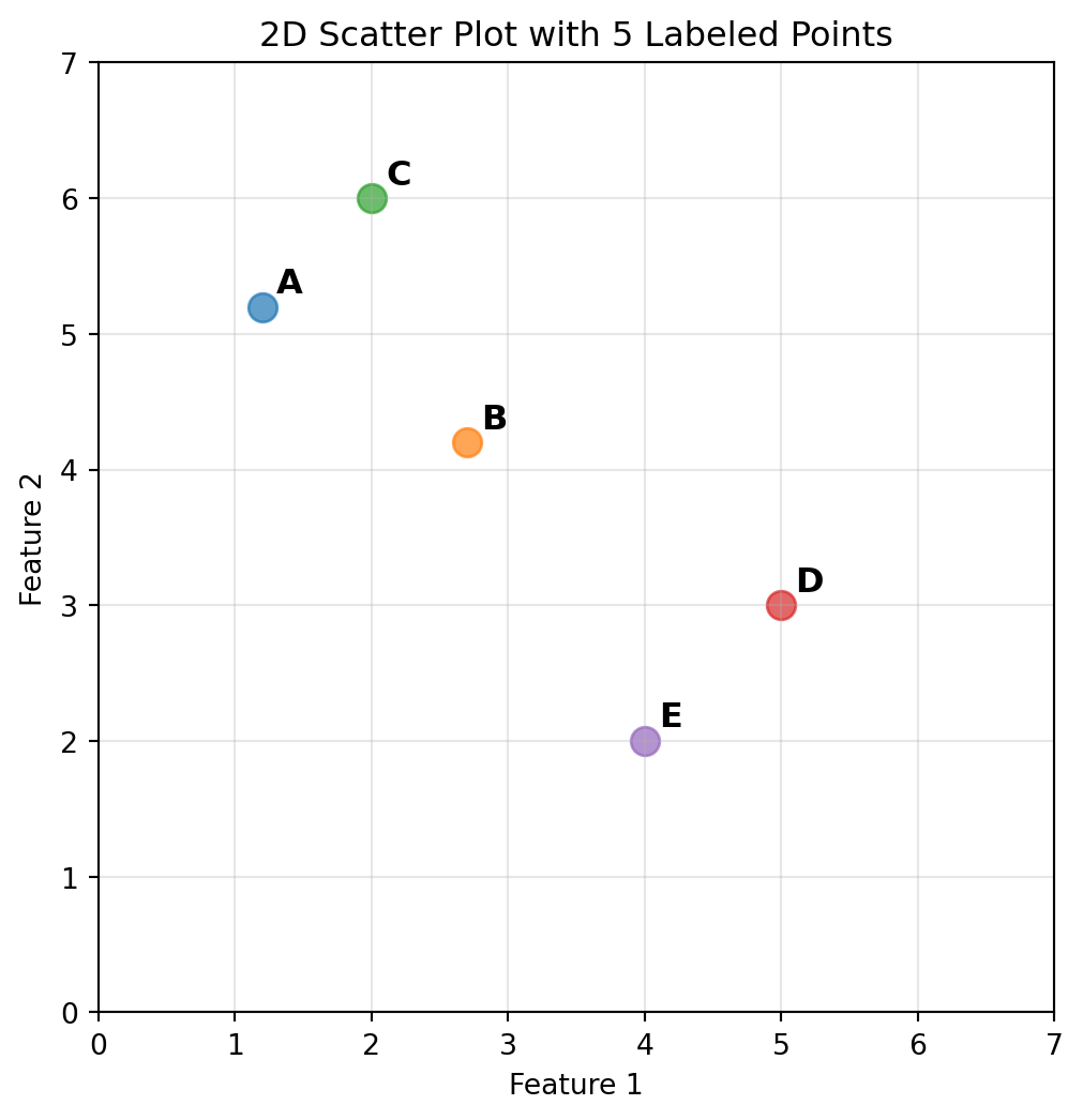 # Create 5 points with labels (same as before)