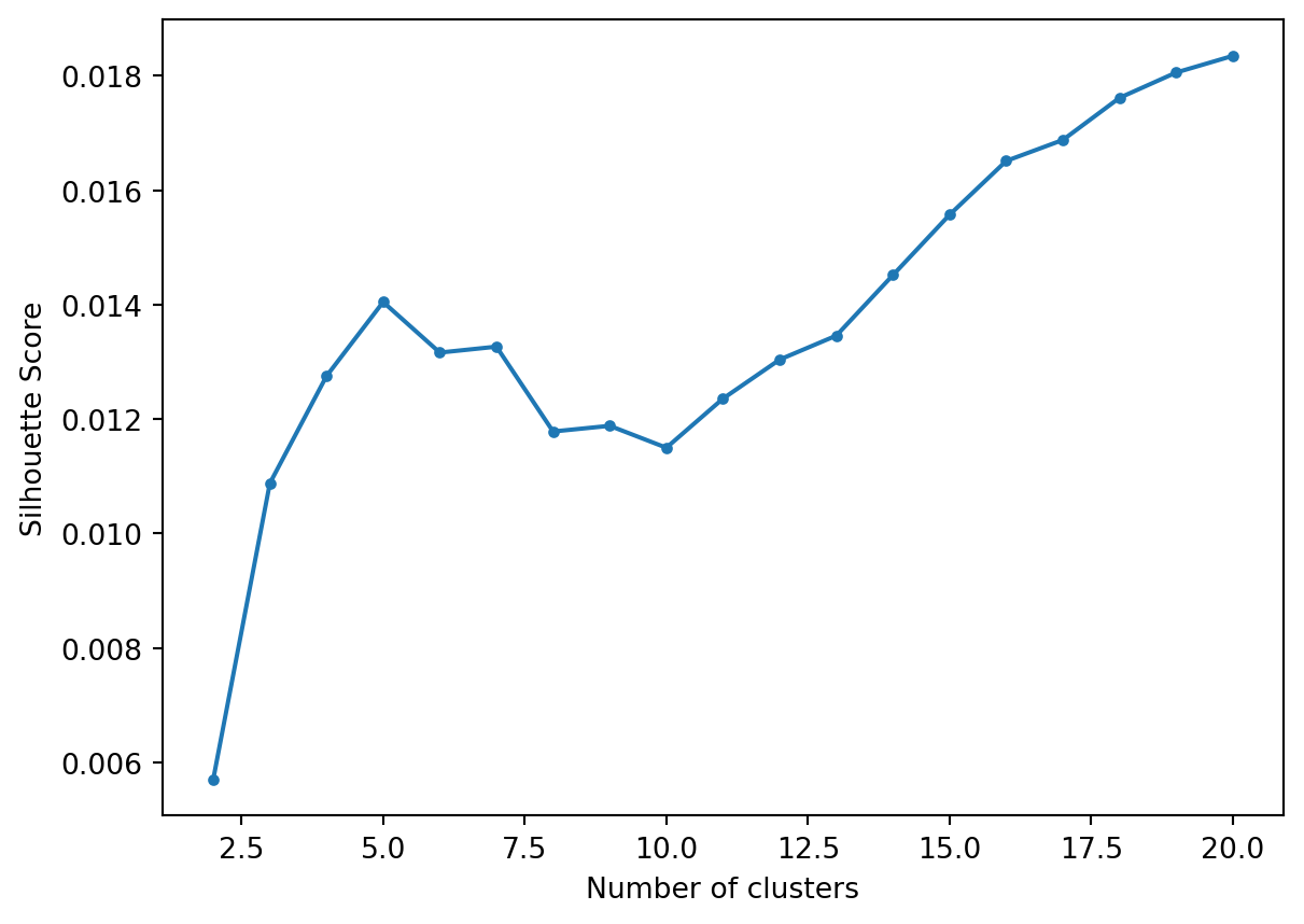 Let’s flatten the hierarchy to different numbers clusters and calculate the Silhouette Score.