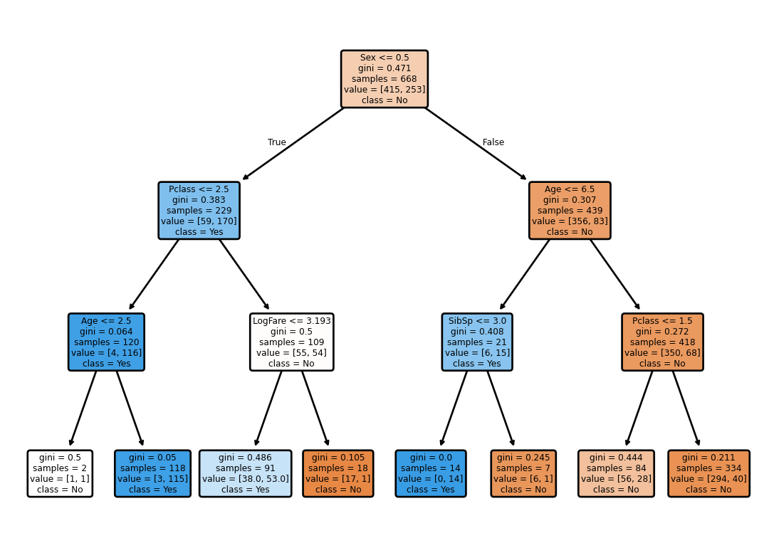 This is quite a bit less accurate than our model that used Sex as the single binary split.