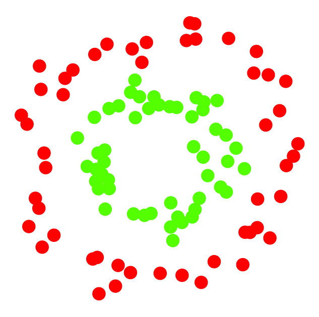 We’ll call the red points the Positive class and the green points the Negative class.