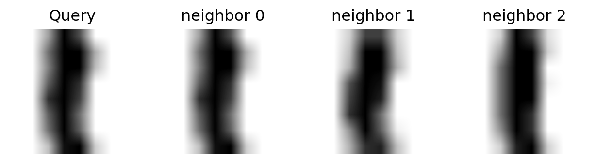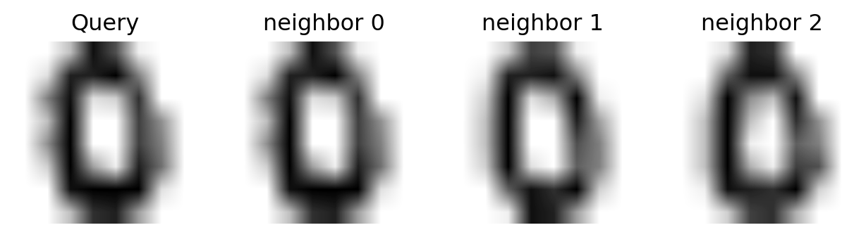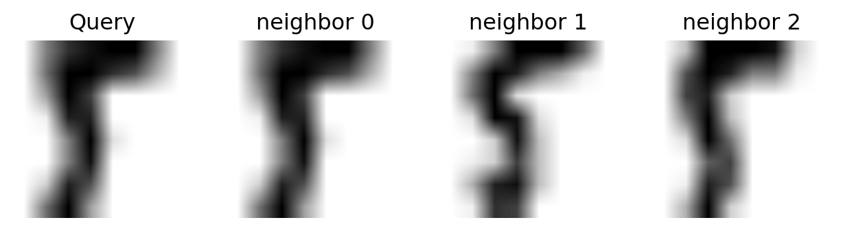 We can get a sense of why \(k\)-NN can succeed at this task by looking at the nearest neighbors of some points.