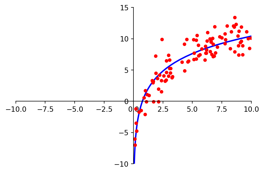ax.scatter(x, y, color='blue', label='Data points', zorder=5)
