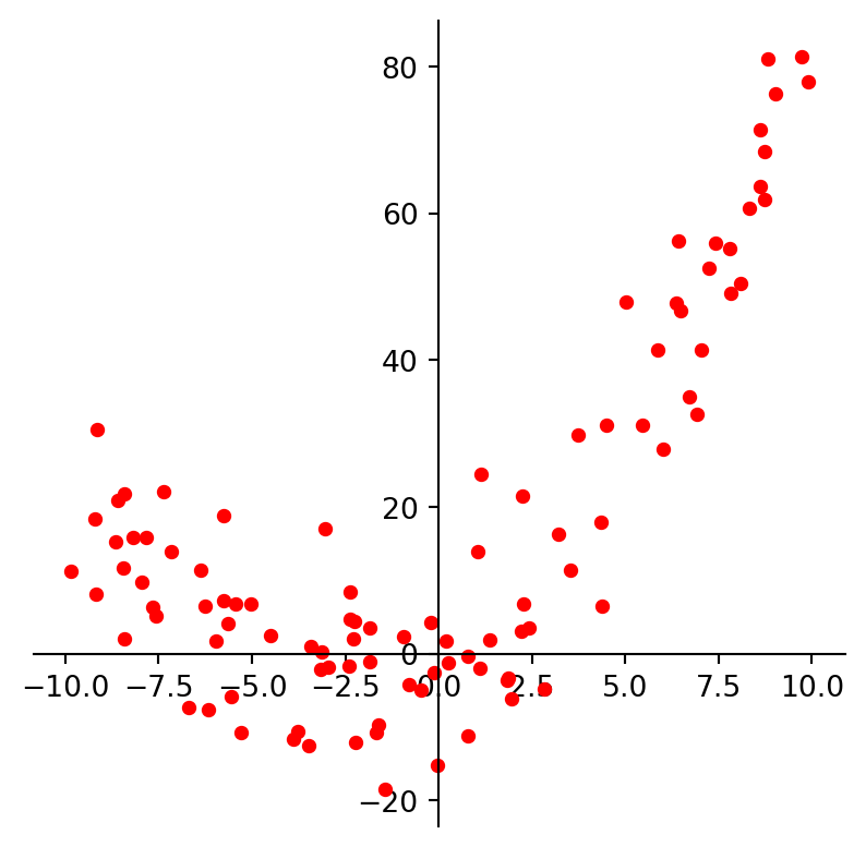 yquad = quad[0] + (quad[1] * xquad) + (quad[2] * xquad * xquad) + std * np.random.randn(100)