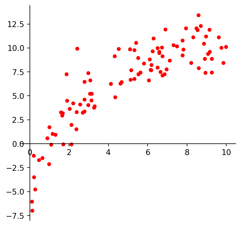 ax.plot(xlin, ylin, 'ro', markersize = 4)