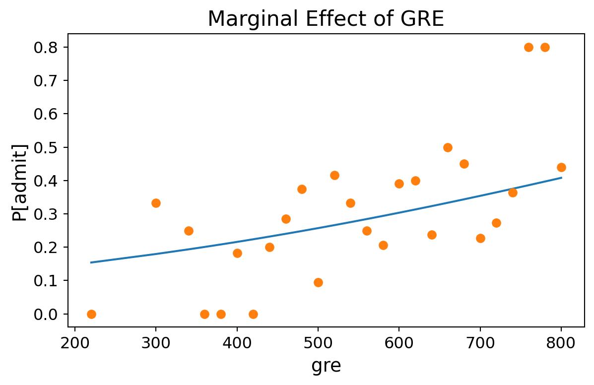 ax.set_title('Marginal Effect of GRE', fontsize = 16);