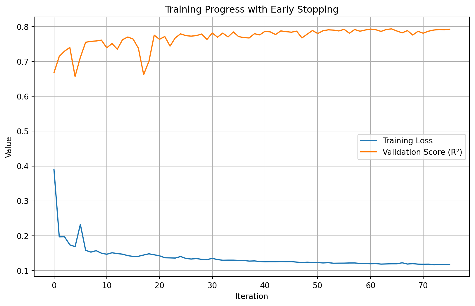 print(f"Training stopped at iteration: {mlp_reg.n_iter_}")